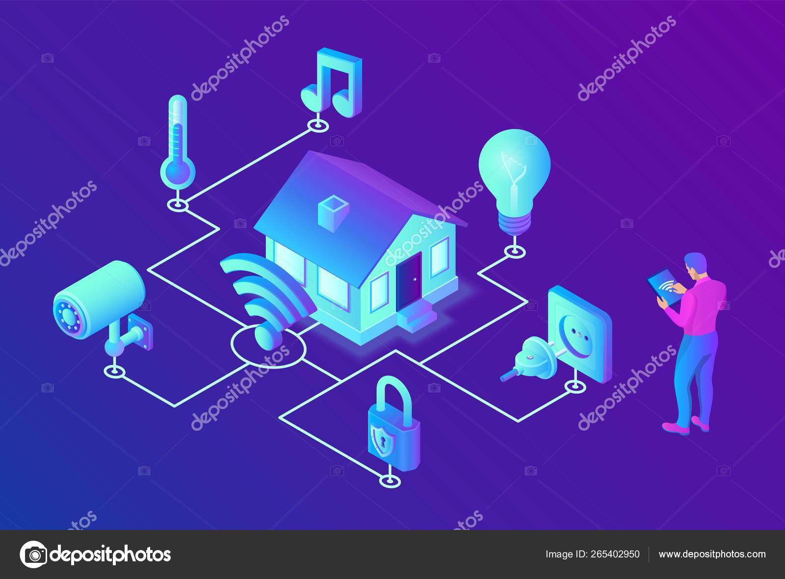Smart Home System Concept 3d Isometric Remote House Control System Iot Concept Smart Home Connection And Control With Devices Through Home Network Internet Of Things Vector Illustration Stock Vector C Iuriimotov 265402950